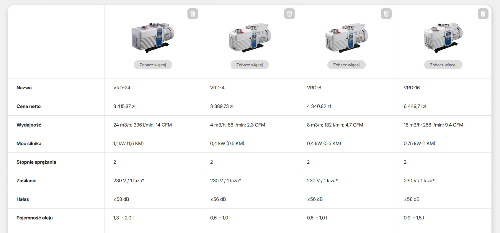 Użytkownik zaznacza interesujące go produkty, a system automatycznie zestawia ich kluczowe parametry w jednej, czytelnej responsywnej tabeli - z możliwością filtrowania i sortowania. Najważniejsze różnice są wyróżnione, a każdy wiersz prowadzi do karty produktu lub pozwala na dodania towaru do koszyka. Rozwiązanie jest przejrzyste, responsywne i łatwe do rozbudowy o kolejne atrybuty.