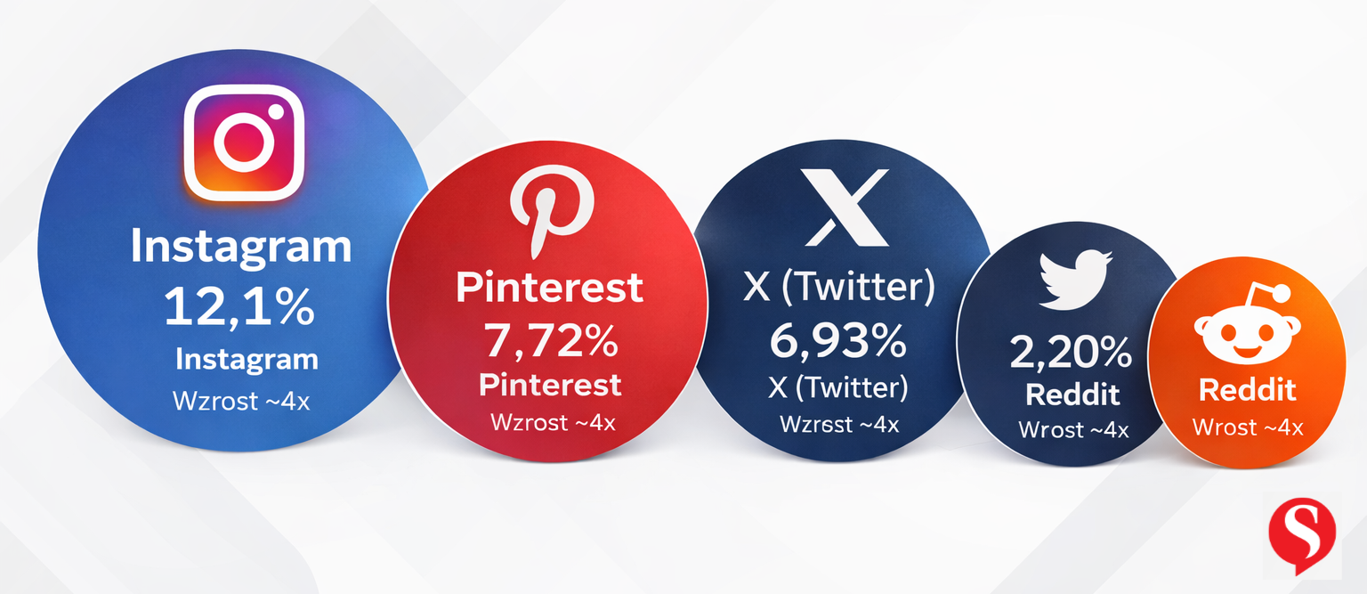 ChatGPT zdominował rynek AI z 87,9% udziałem, stając się codziennym narzędziem Polaków. Największa zmiana dotyczy mediów społecznościowych. Facebook stracił ponad 26% rynku (spadek z 91% do 64%), podczas gdy rosną Instagram, Pinterest i X. Użytkownicy stają się bardziej wymagający i świadomie wybierają wyspecjalizowane narzędzia zamiast uniwersalnych gigantów.